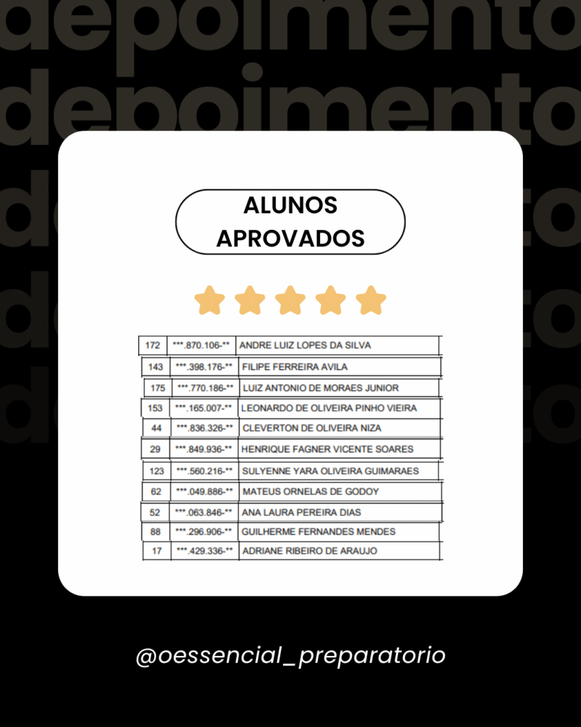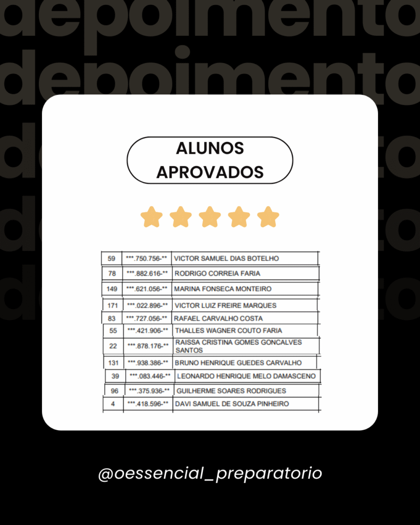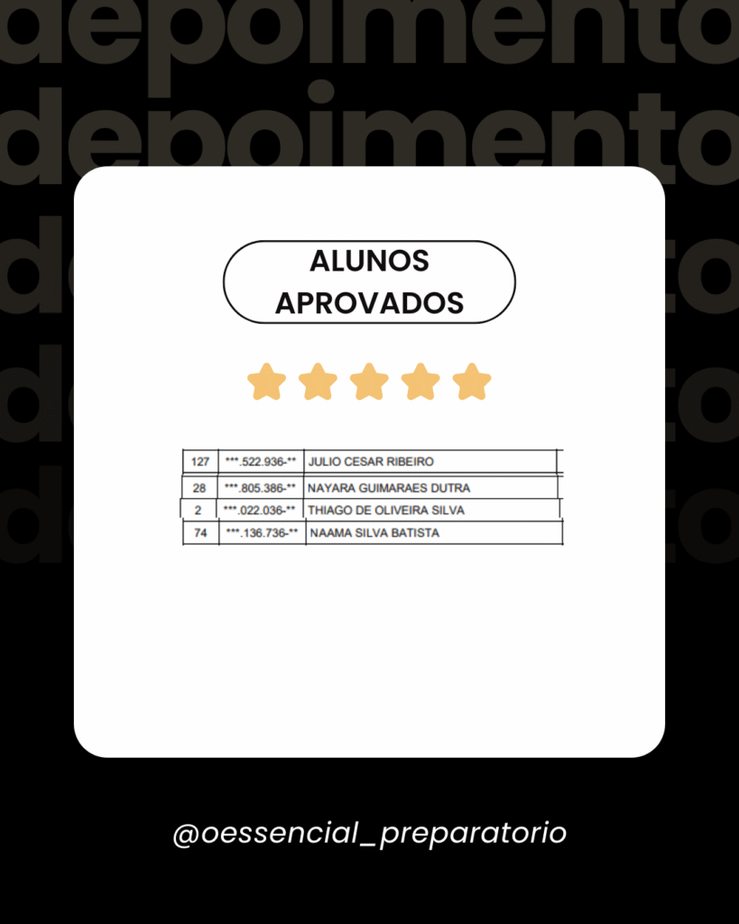Siga nosso Instagram e fique por dentro das novidades do Essencial Preparatório.